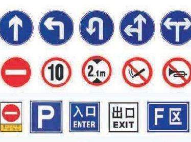 标志牌安装在进出口以及车场内、道路的适当位置,引导车辆正确行驶,交通标志设禁标志、指示标志及其他标志。